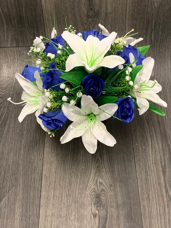 Crafted with care and attention to detail, this artificial flower arrangement is made to last and bring joy. To decorate a love ones grave, this arrangement is sure to impress.